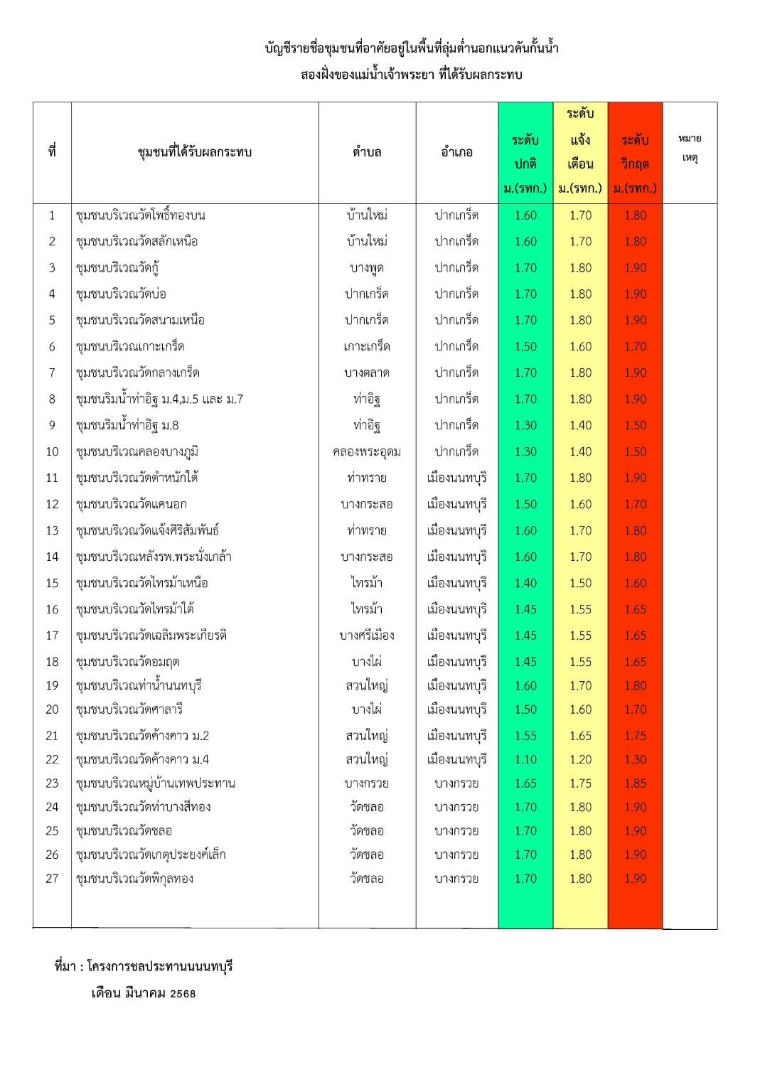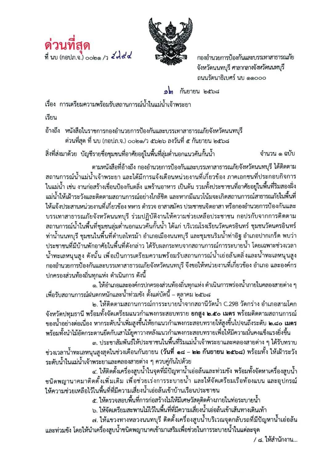 • ประชาสัมพันธ์ เรื่องการเตรียมความพร้อมรับมือสถานการณ์น้ำในแม่น้ำเจ้าพระยา