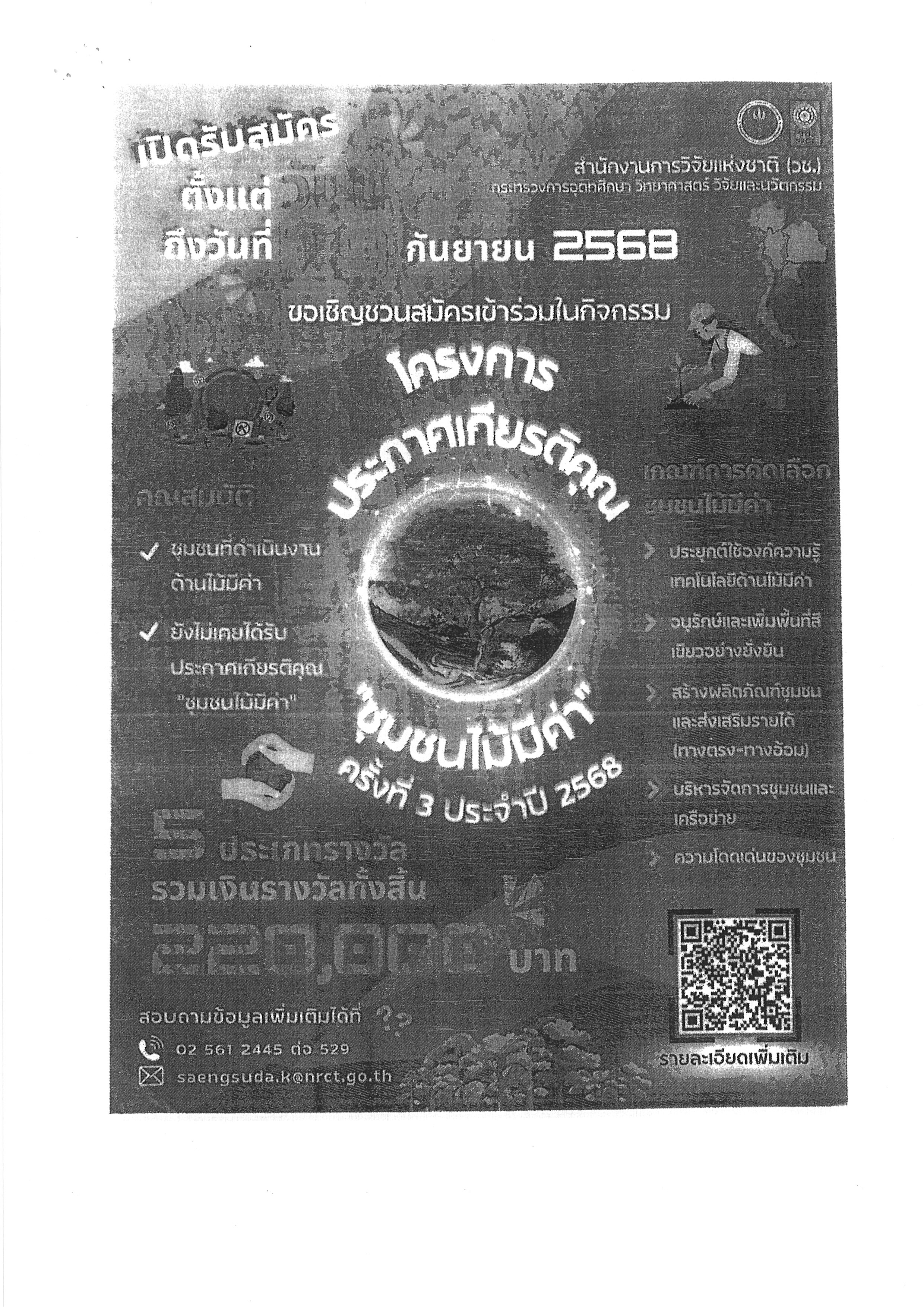• ประชาสัมพันธ์กิจกรรม โครงการประกาศเกียรติคุณ "ชุมชนไม้มีค่า" ระดับประเทศ ครั้งที่ ๓ ประจำปี ๒๕๖๘