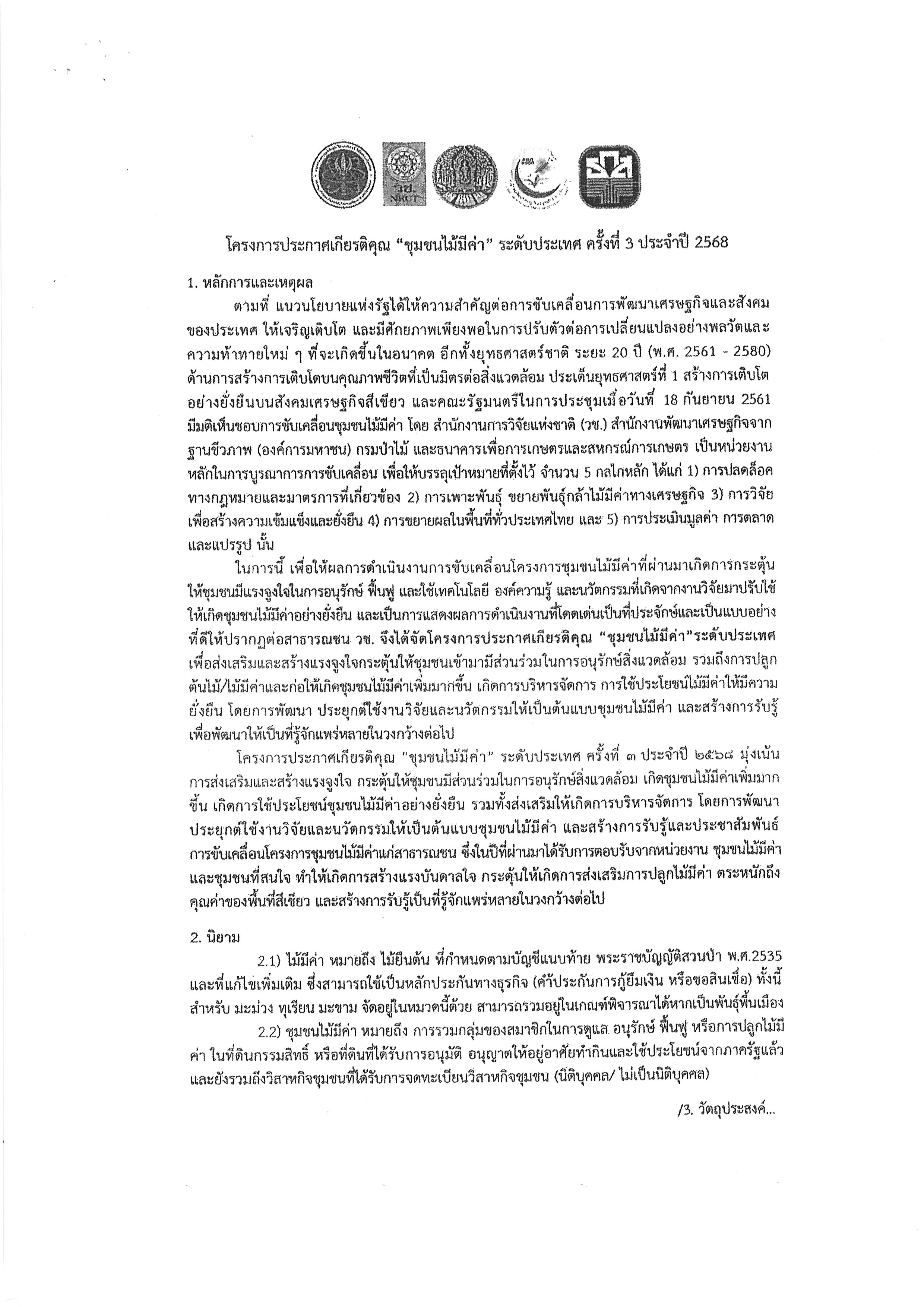 ประชาสัมพันธ์กิจกรรม โครงการประกาศเกียรติคุณ "ชุมชนไม้มีค่า" ระดับประเทศ ครั้งที่ ๓ ประจำปี ๒๕๖๘