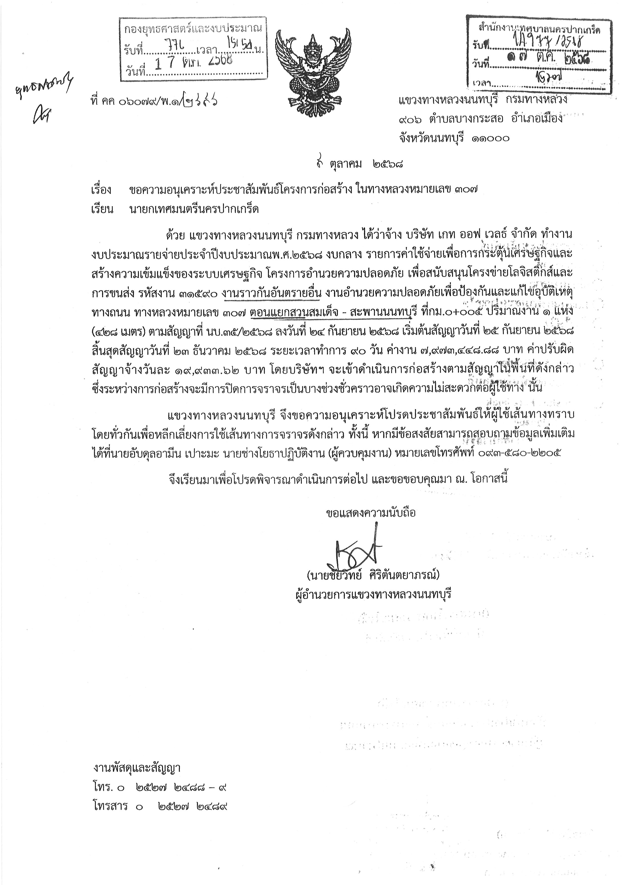 • ประชาสัมพันธ์ โครงการก่อสร้าง ในทางหลวงหมายเลข ๓๐๗