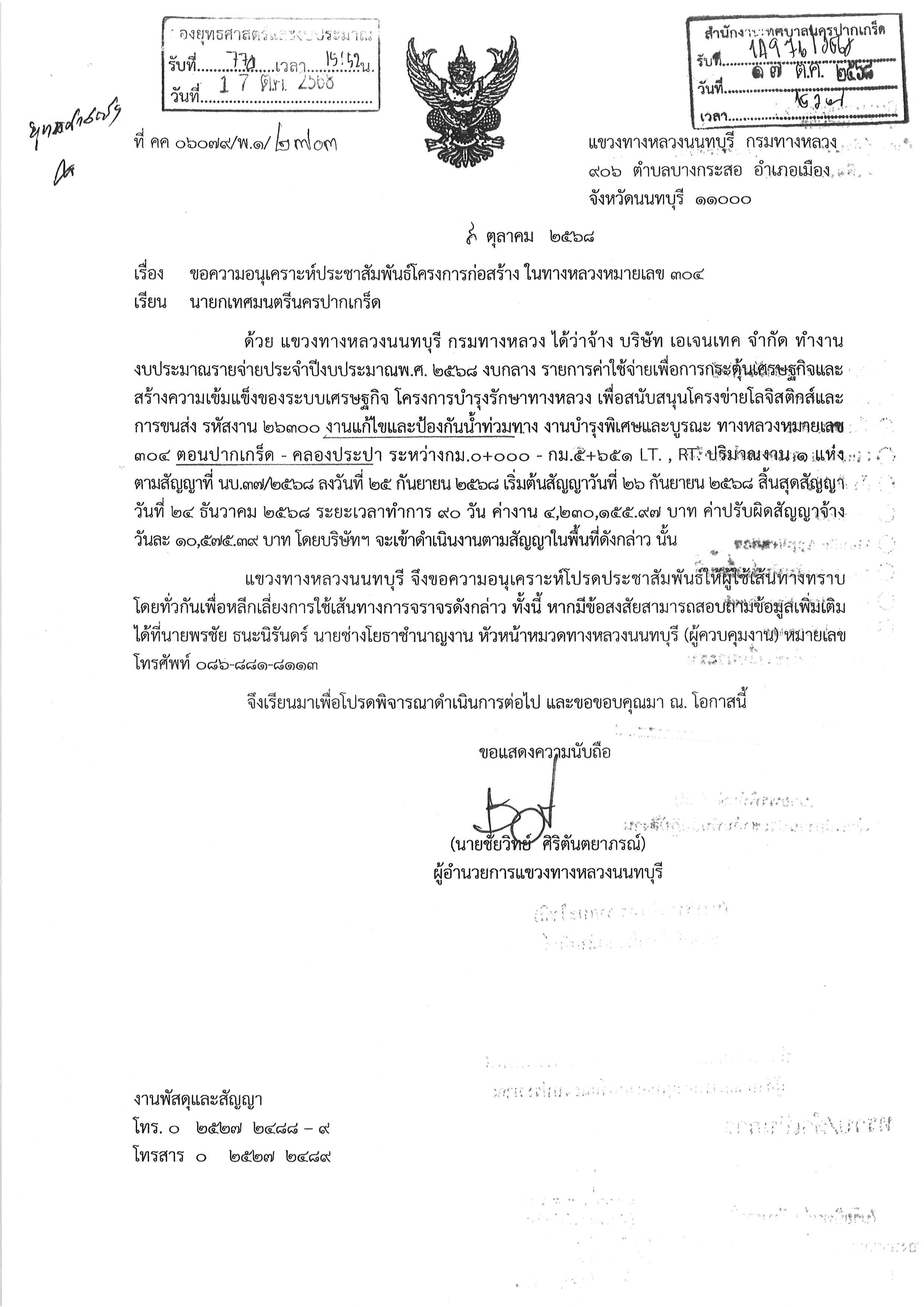 • ประชาสัมพันธ์ โครงการก่อสร้าง ในทางหลวงหมายเลข ๓๐๔ (งานแก้ไขและป้องกันน้ำท่วมทาง)