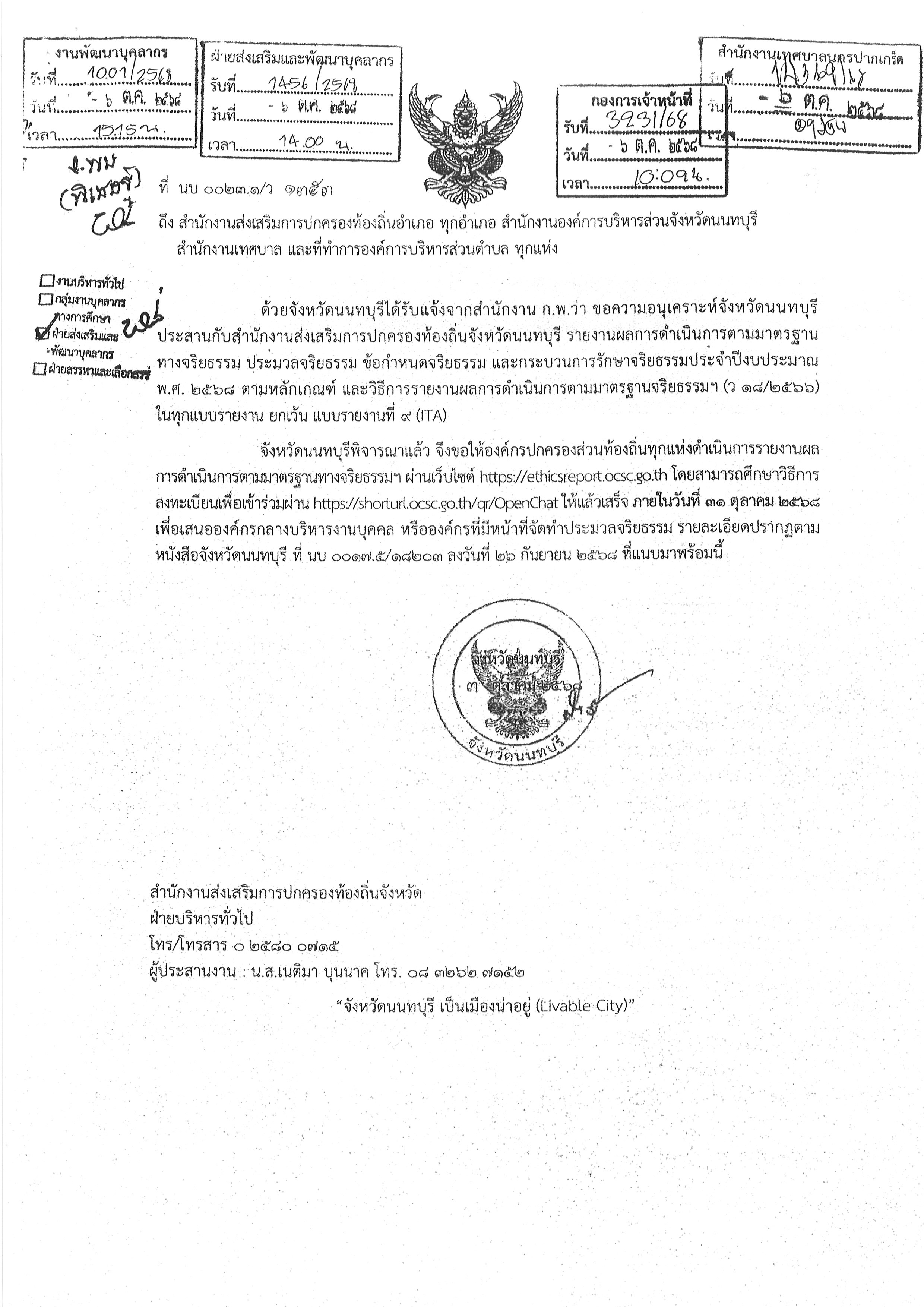 • ประชาสัมพันธ์ QR Code แบบสอบถามการมีและใช้มาตรฐานทางจริยธรรมของหน่วยงานของรัฐ
