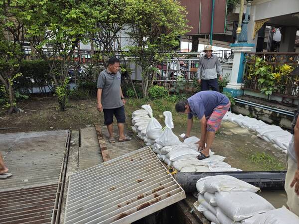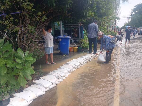 ผู้ว่าฯ นนทบุรี ลงพื้นที่ตรวจสถานการณ์น้ำท่วม พร้อมให้กำลังใจการบรรจุกระสอบทราย ป้องกันน้ำท่วมนครปากเกร็ด