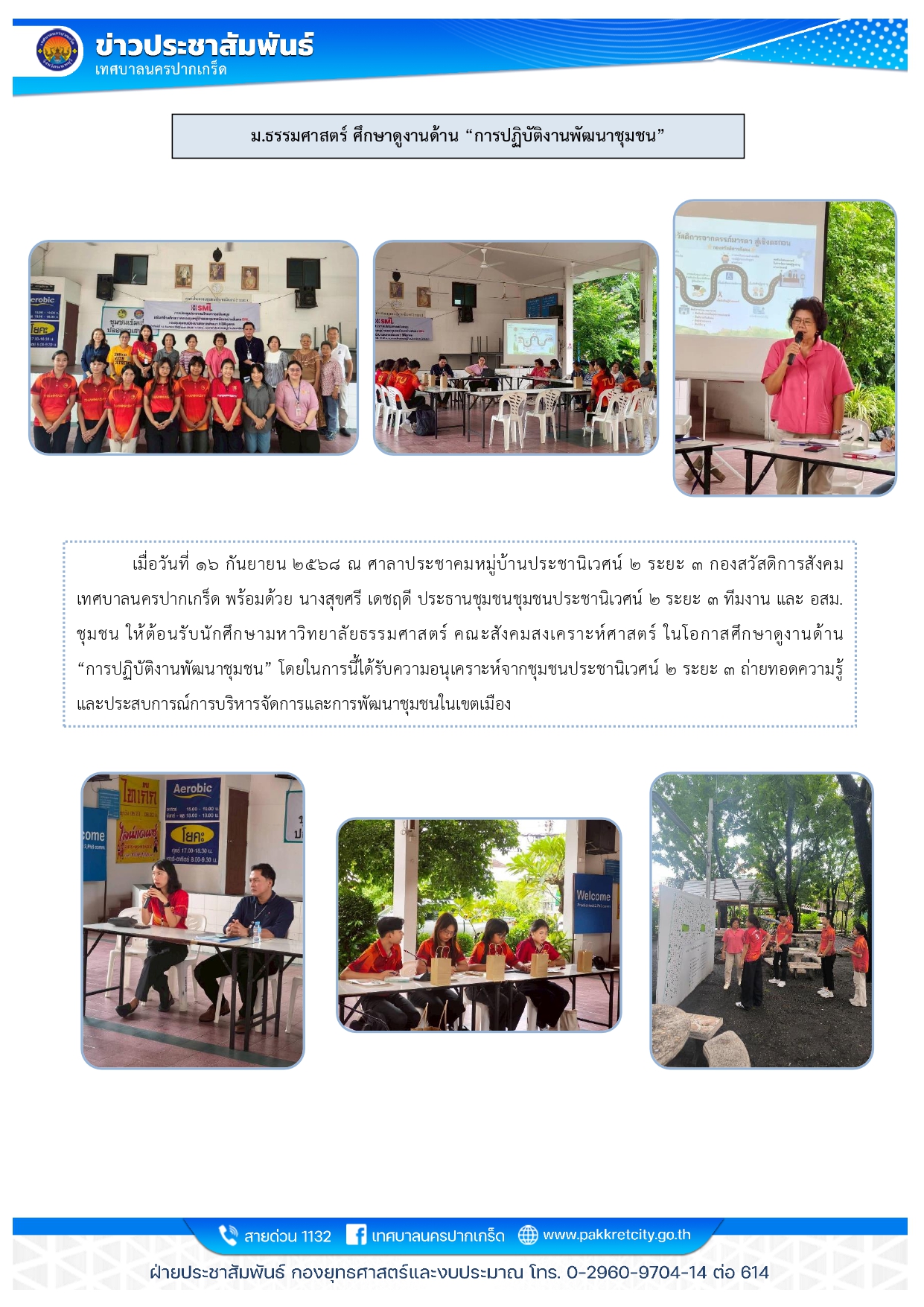 ม.ธรรมศาสตร์ ศึกษาดูงานด้าน “การปฏิบัติงานพัฒนาชุมชน”