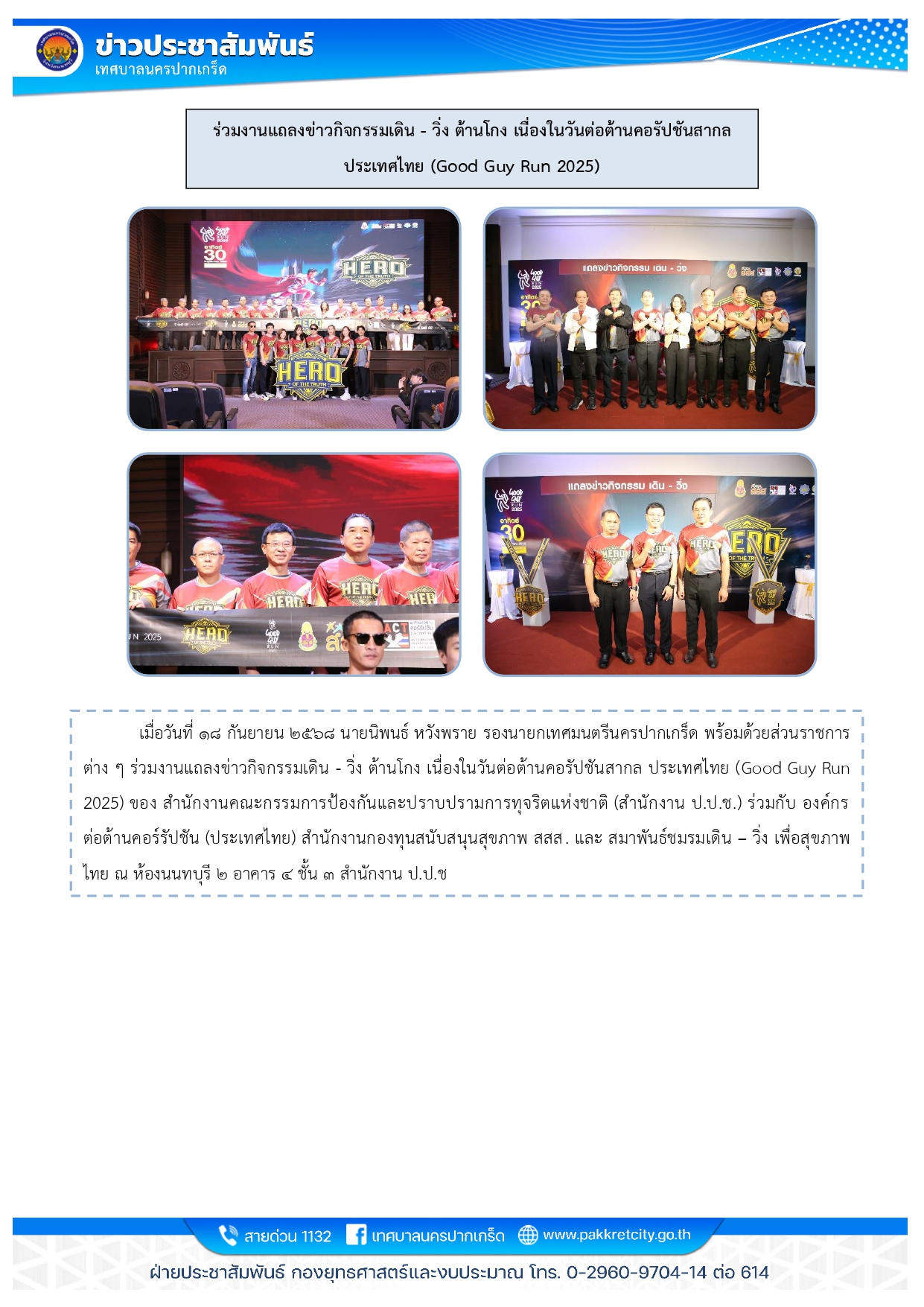ร่วมงานแถลงข่าวกิจกรรมเดิน - วิ่ง ต้านโกง เนื่องในวันต่อต้านคอรัปชันสากล ประเทศไทย (Good Guy Run 2025)
