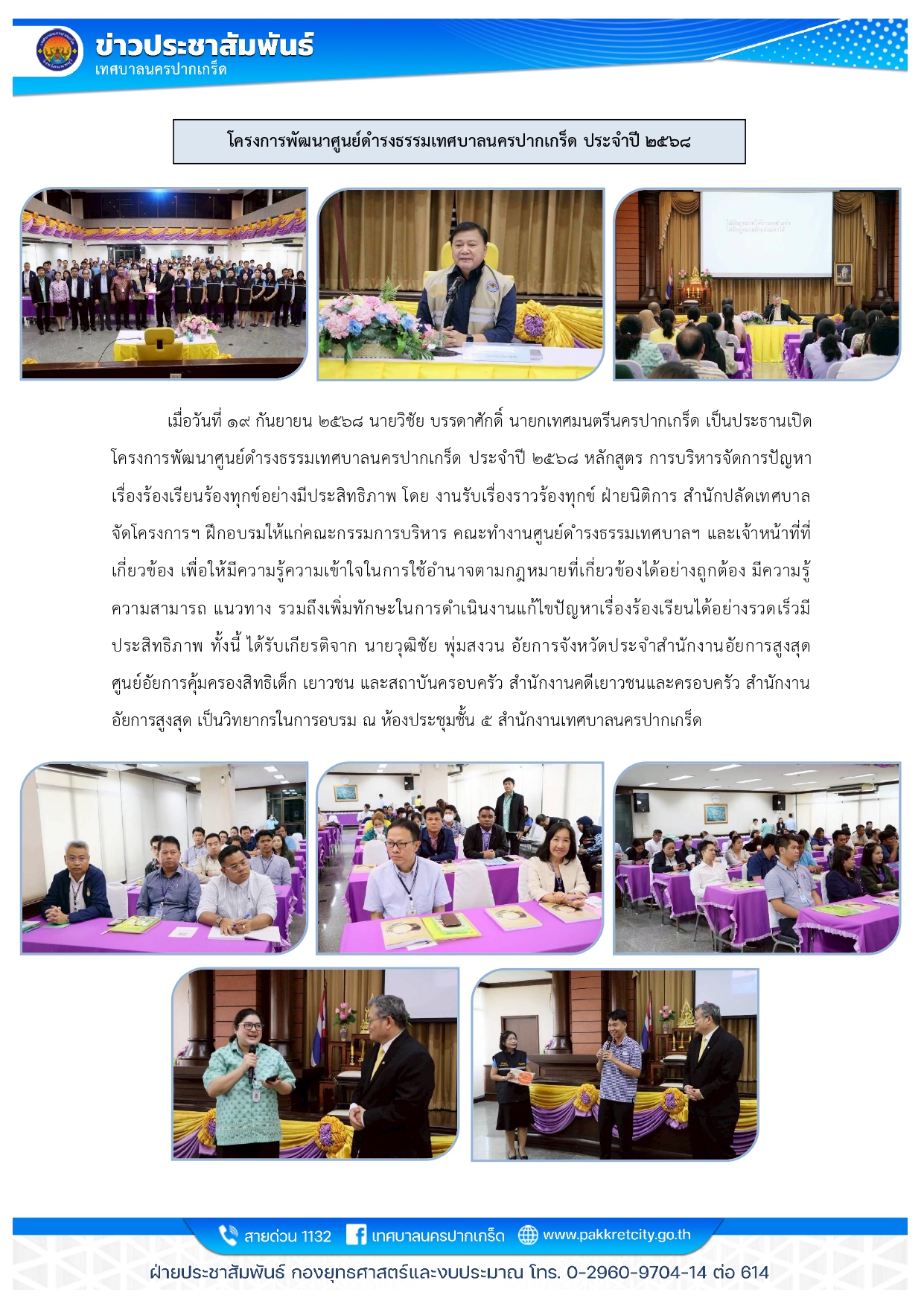 โครงการพัฒนาศูนย์ดำรงธรรมเทศบาลนครปากเกร็ด ประจำปี ๒๕๖๘