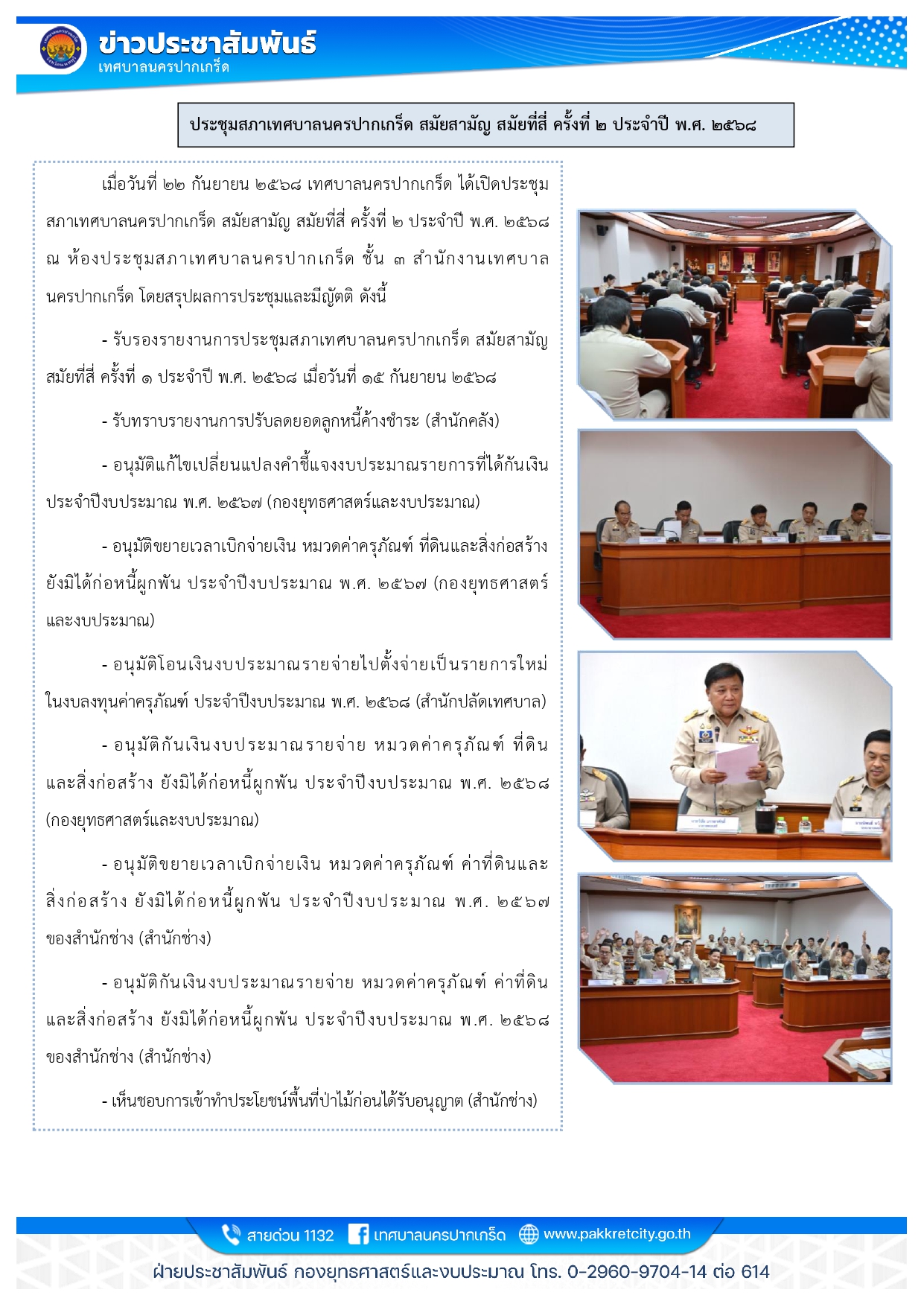 ประชุมสภาเทศบาลนครปากเกร็ด สมัยสามัญ สมัยที่สี่ ครั้งที่ ๒ ประจำปี พ.ศ. ๒๕๖๘