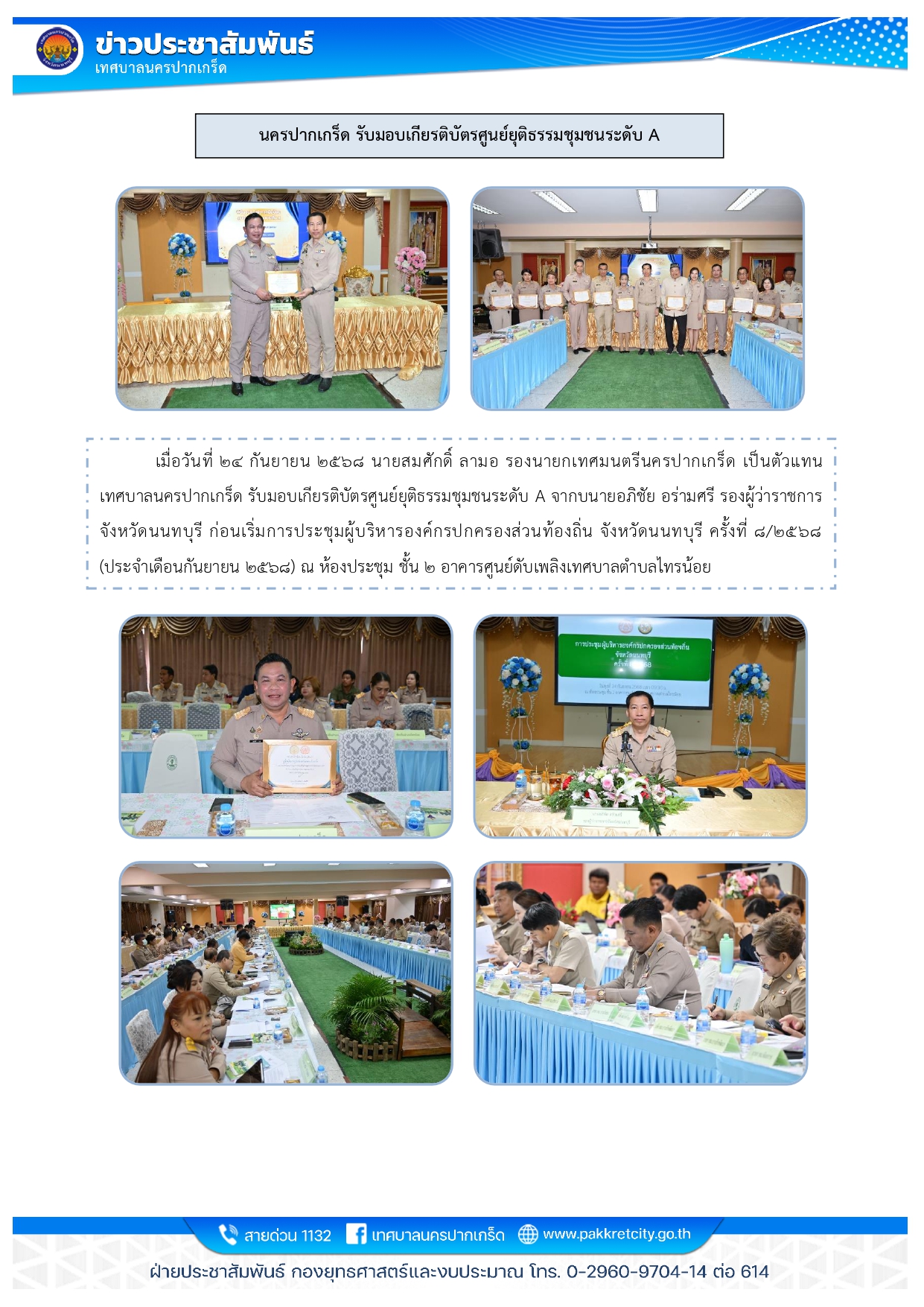 นครปากเกร็ด รับมอบเกียรติบัตรศูนย์ยุติธรรมชุมชนระดับ A