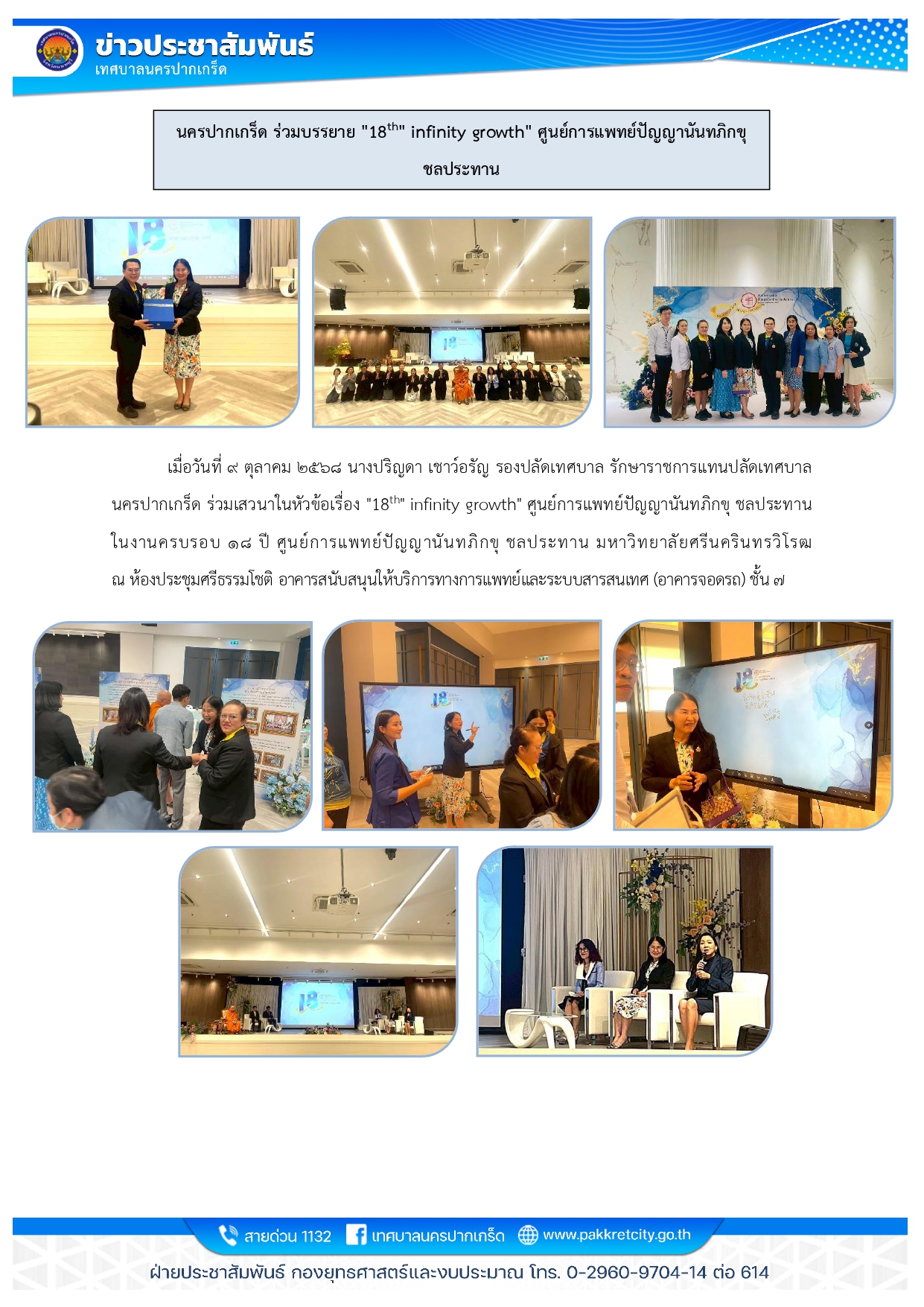 นครปากเกร็ด ร่วมบรรยาย "18th" infinity growth" ศูนย์การแพทย์ปัญญานันทภิกขุ ชลประทาน