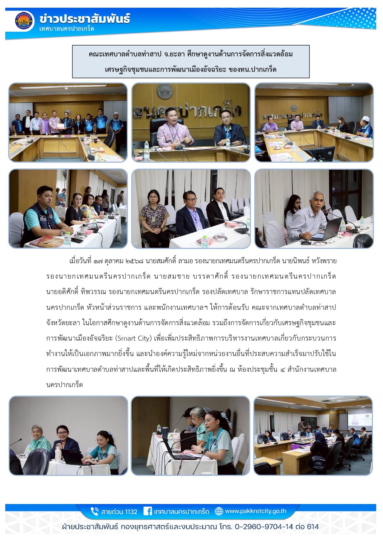 คณะเทศบาลตำบลท่าสาป จ.ยะลา ศึกษาดูงานด้านการจัดการสิ่งแวดล้อม เศรษฐกิจชุมชนและการพัฒนาเมืองอัจฉริยะ ของทน.ปากเกร็ด