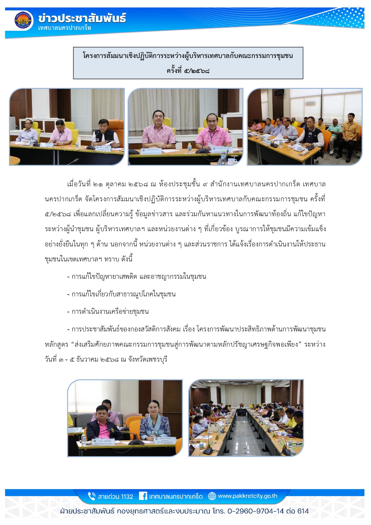 โครงการสัมมนาเชิงปฏิบัติการระหว่างผู้บริหารเทศบาลกับคณะกรรมการชุมชน ครั้งที่ ๕/๒๕๖๘