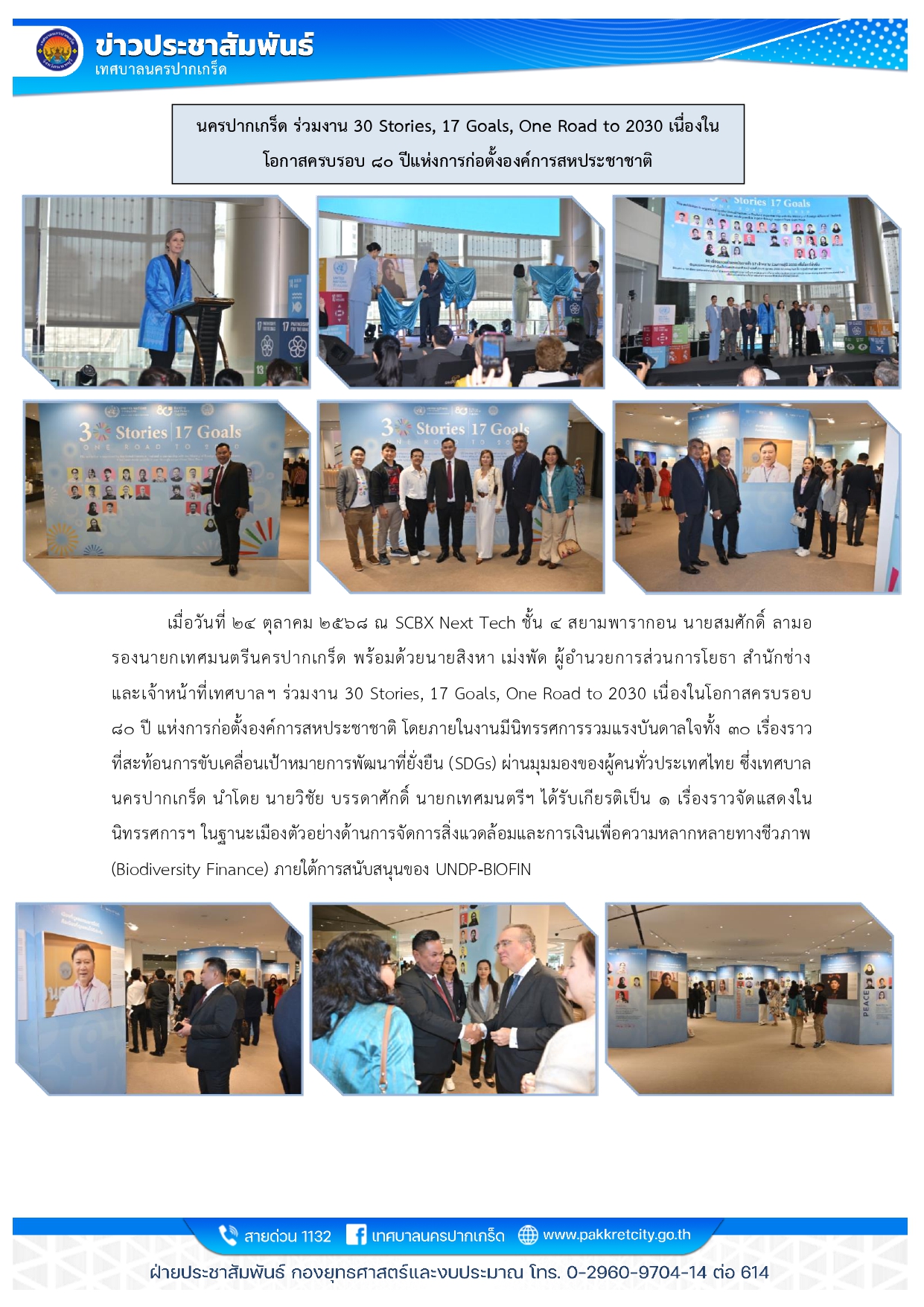 นครปากเกร็ด ร่วมงาน 30 Stories, 17 Goals, One Road to 2030 เนื่องใน โอกาสครบรอบ ๘๐ ปีแห่งการก่อตั้งองค์การสหประชาชาติ