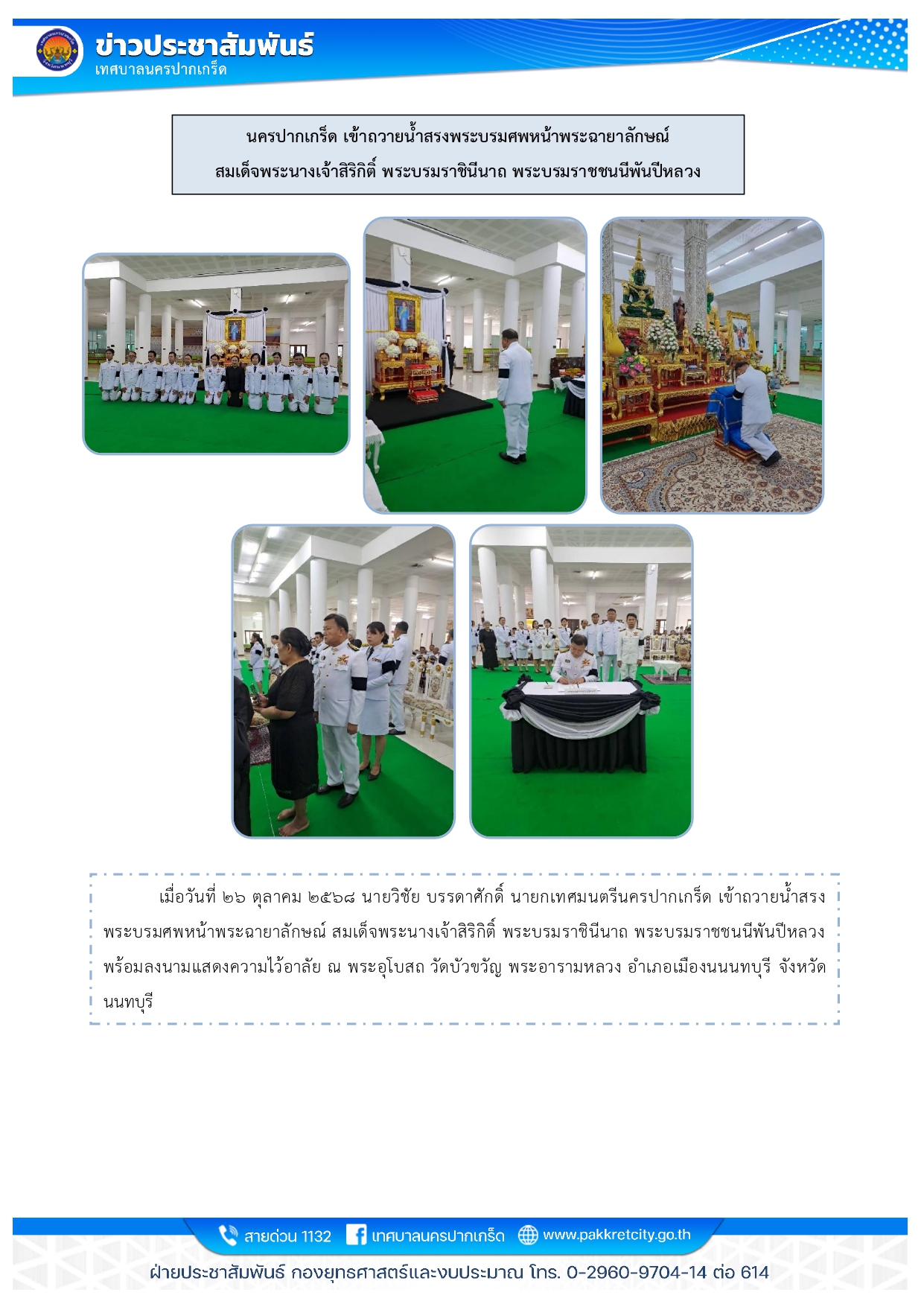 นครปากเกร็ด เข้าถวายน้ำสรงพระบรมศพหน้าพระฉายาลักษณ์ สมเด็จพระนางเจ้าสิริกิติ์ พระบรมราชินีนาถ พระบรมราชชนนีพันปีหลวง