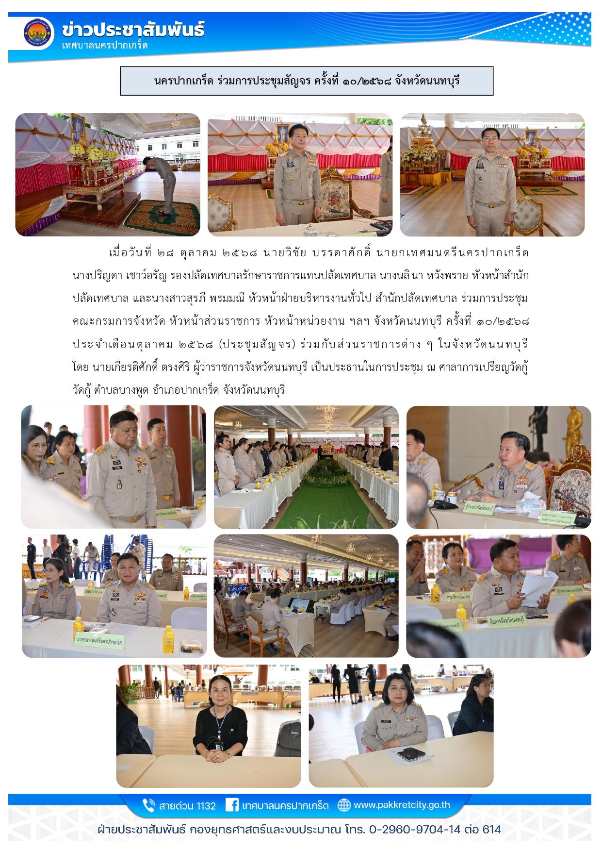 นครปากเกร็ด ร่วมการประชุมสัญจร ครั้งที่ ๑๐/๒๕๖๘ จังหวัดนนทบุรี