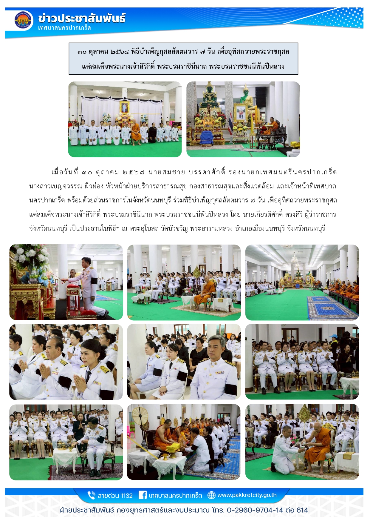 ๓๐ ตุลาคม ๒๕๖๘ พิธีบำเพ็ญกุศลสัตตมวาร ๗ วัน เพื่ออุทิศถวายพระราชกุศล แด่สมเด็จพระนางเจ้าสิริกิติ์ พระบรมราชินีนาถ พระบรมราชชนนีพันปีหลวง