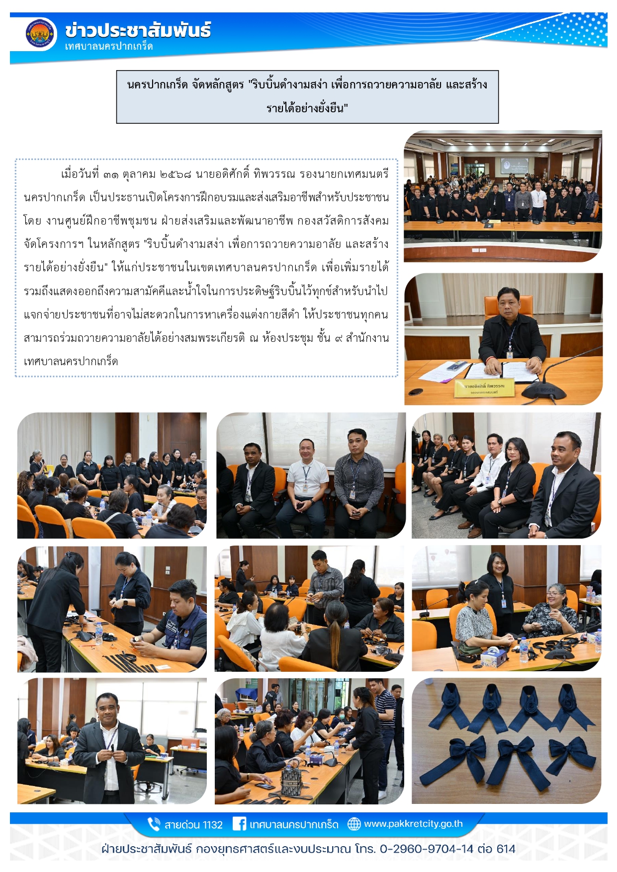 นครปากเกร็ด จัดหลักสูตร "ริบบิ้นดำงามสง่า เพื่อการถวายความอาลัย และสร้าง รายได้อย่างยั่งยืน"