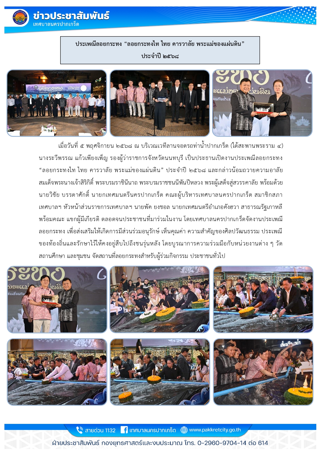 ประเพณีลอยกระทง “ลอยกระทงไท ไทย คารวาลัย พระแม่ของแผ่นดิน” ประจำปี ๒๕๖๘