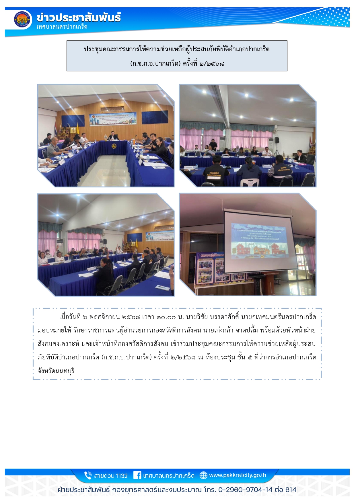 ประชุมคณะกรรมการให้ความช่วยเหลือผู้ประสบภัยพิบัติอำเภอปากเกร็ด (ก.ช.ภ.อ.ปากเกร็ด) ครั้งที่ ๒/๒๕๖๘