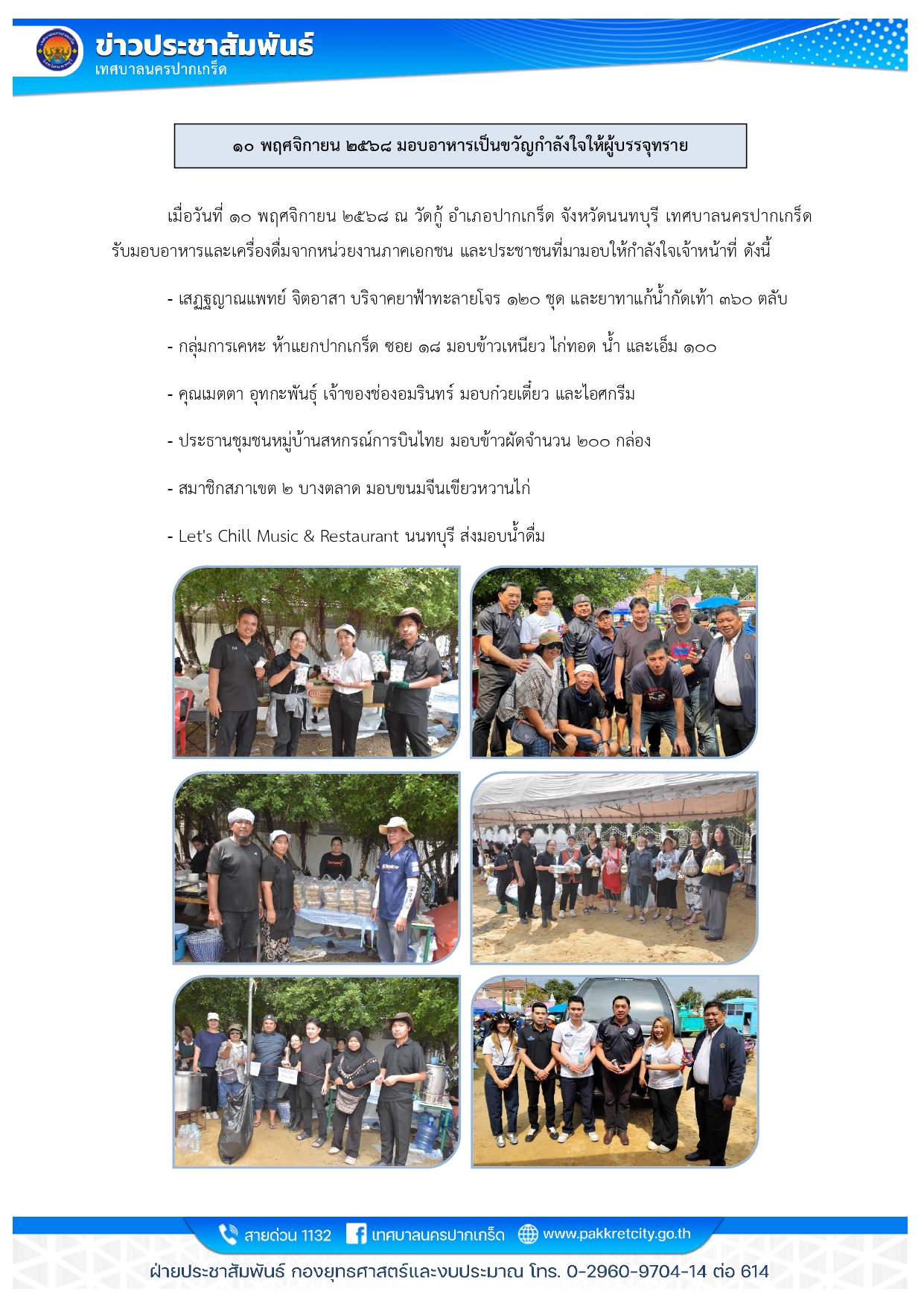 ๑๐ พฤศจิกายน ๒๕๖๘ มอบอาหารเป็นขวัญกำลังใจให้ผู้บรรจุทราย