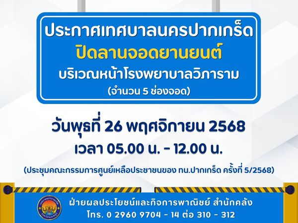 ขอเชิญชวนผู้รับบริการหรือผู้ติดต่อรับบริการในทุกภารกิจของเทศบาลนครปากเกร็ด ร่วมเป็นส่วนหนึ่งในการประเมิน คุณธรรมและความโปร่งใส ตั้งแต่บัดนี้ ถึง วันที่ ๓๐ มิถุนายน ๒๕๖๘