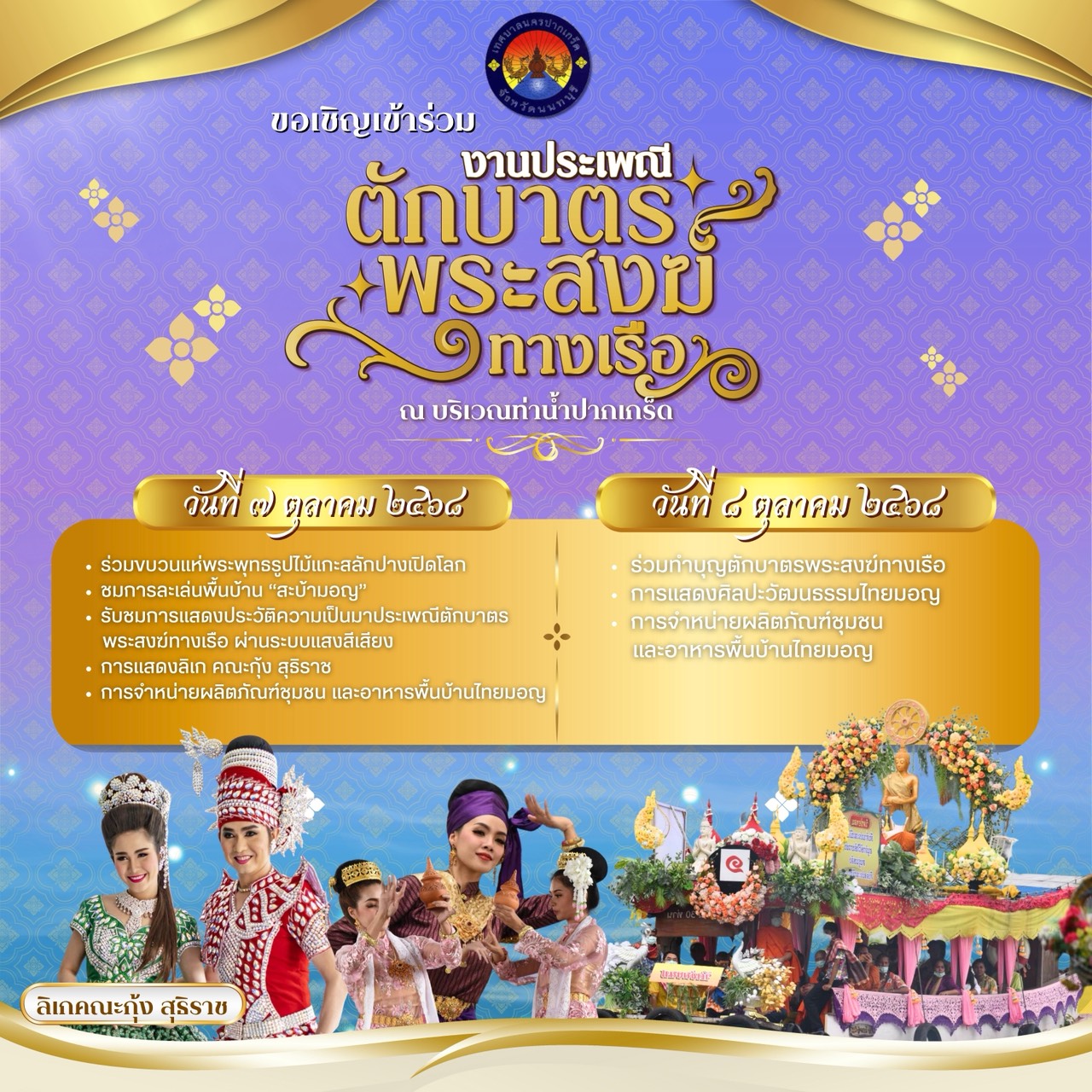 ขอเชิญร่วมงานประเพณีตักบาตรพระสงฆ์ทางเรือ