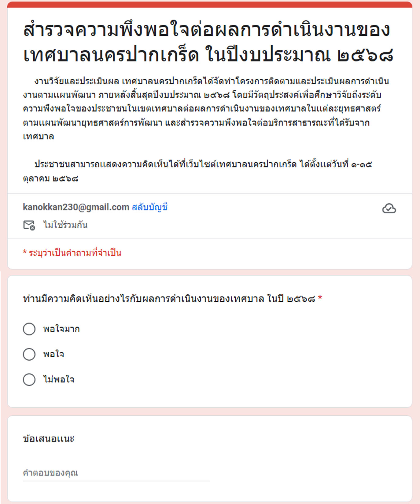 - Google ฟอร์ม >> คลิกเพื่อแสดงความคิดเห็น