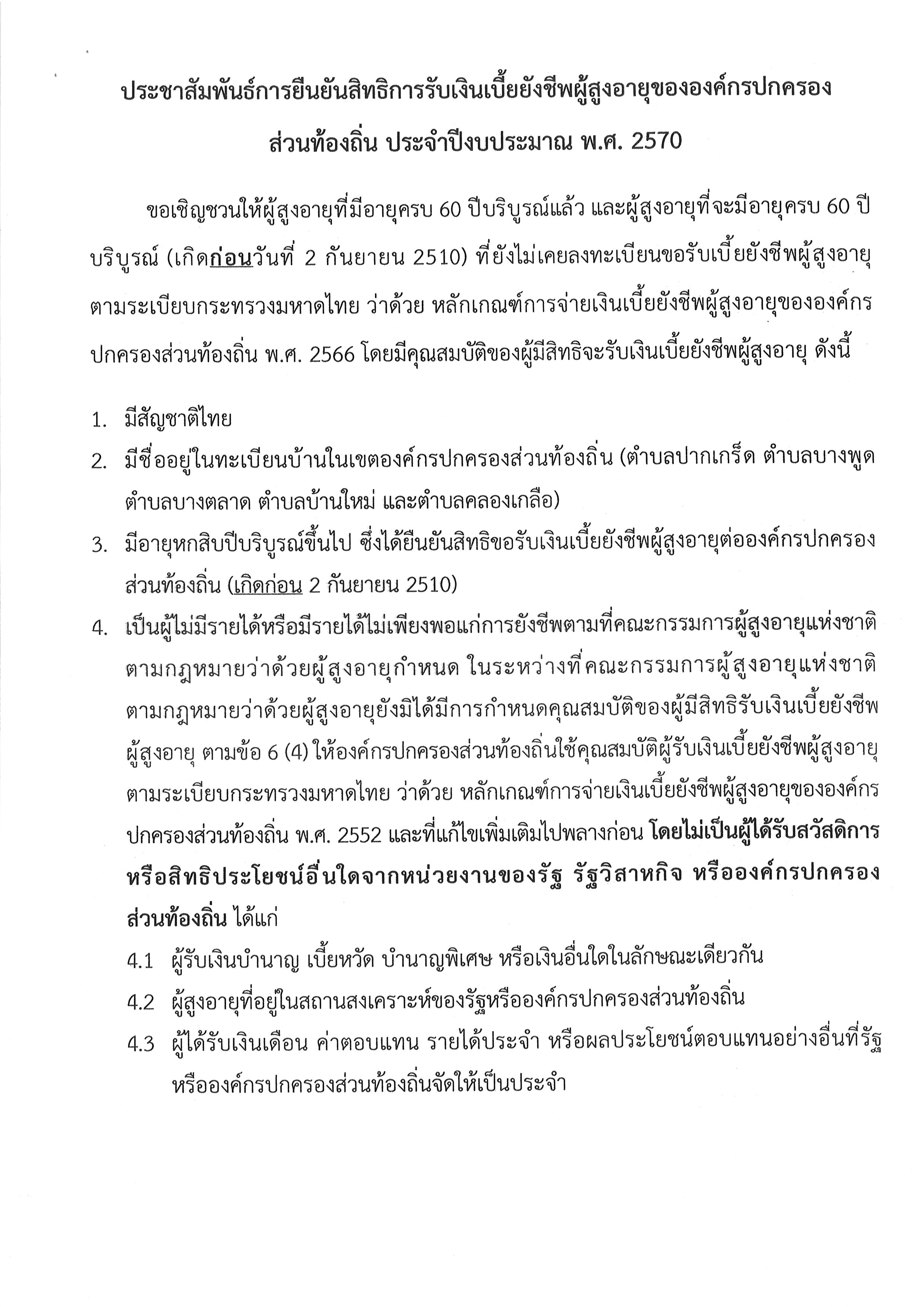 ประชาสัมพันธ์ การยืนยันสิทธิรับเงินเบี้ยยังชีพผู้สูงอายุ ประจำปีงบประมาณ พ.ศ.๒๕๗๐