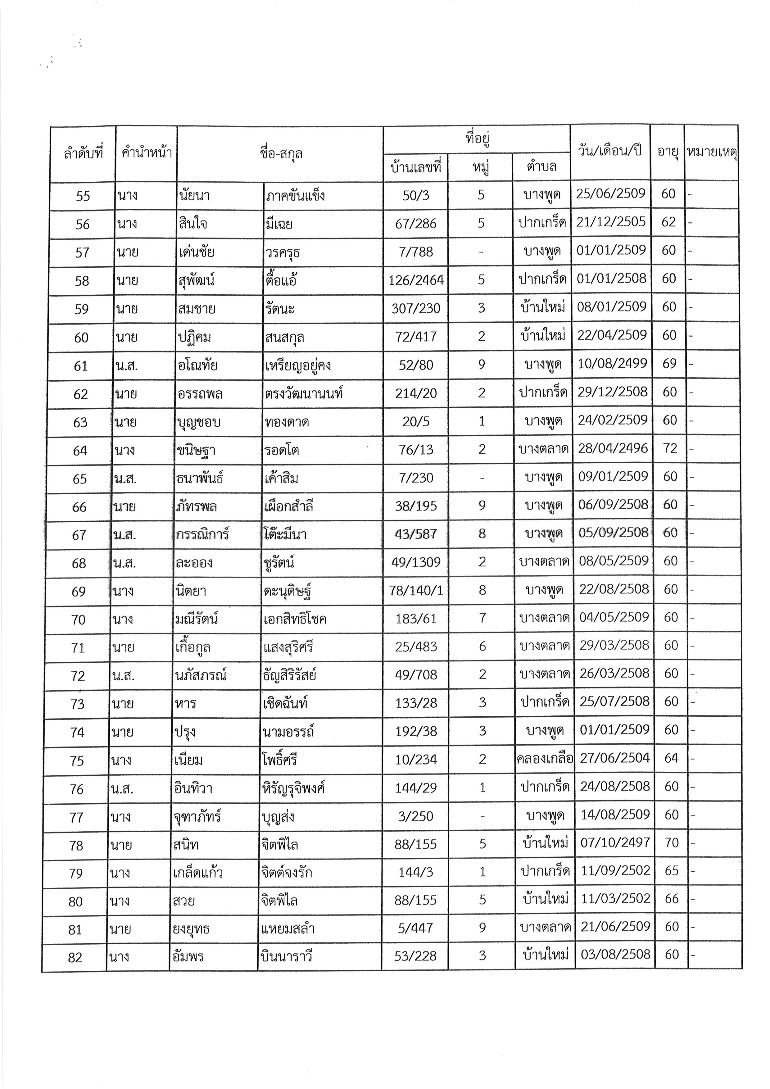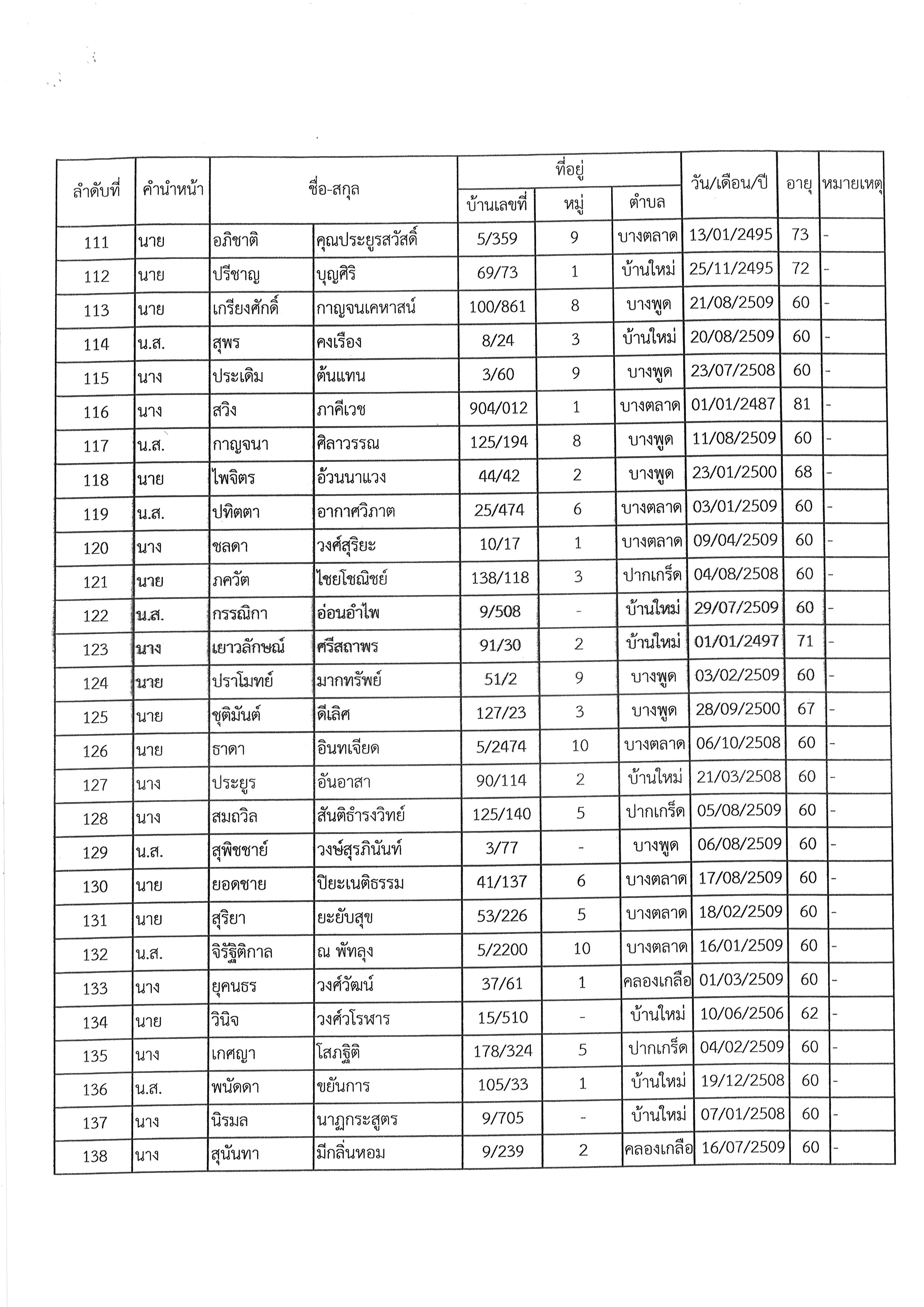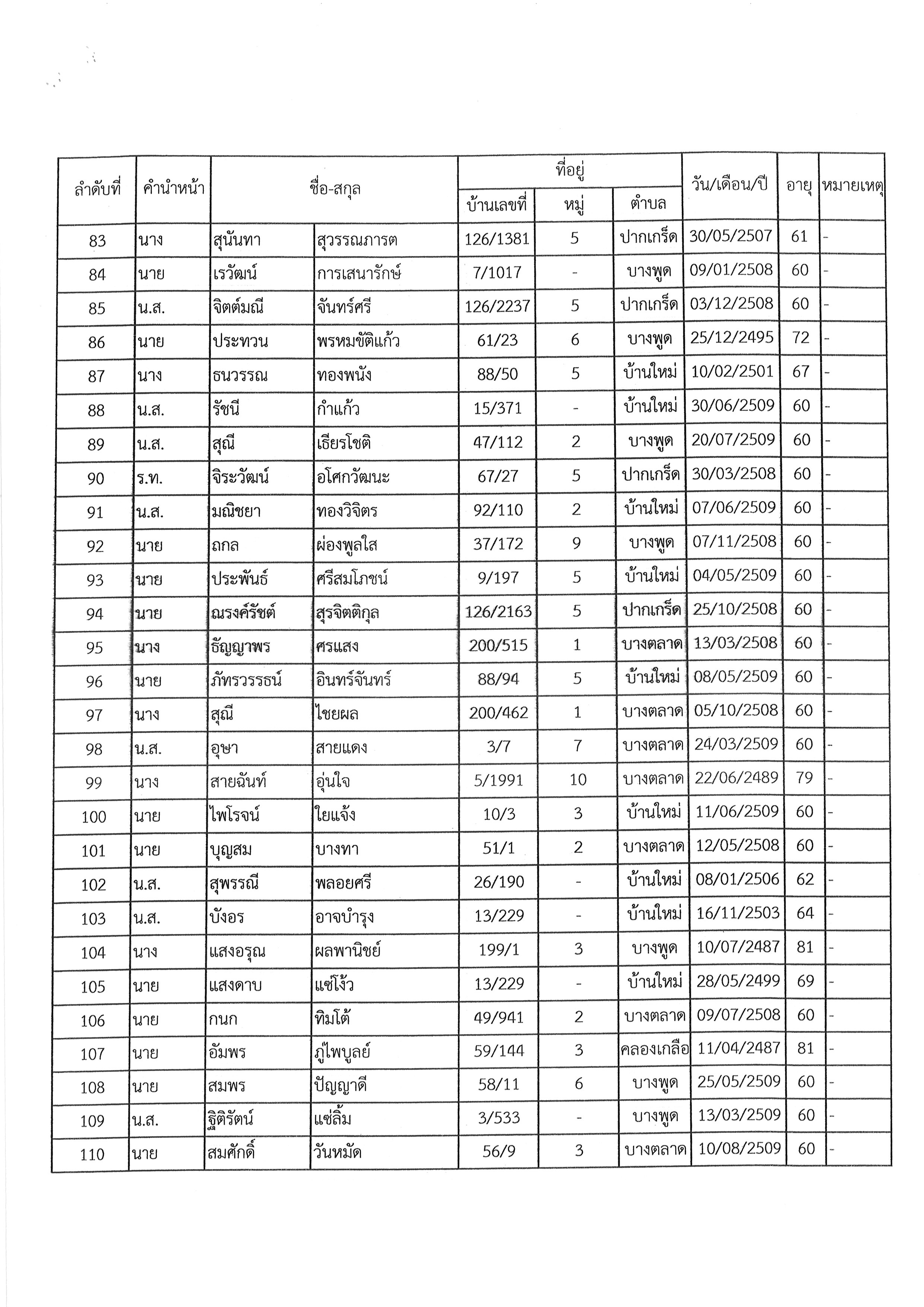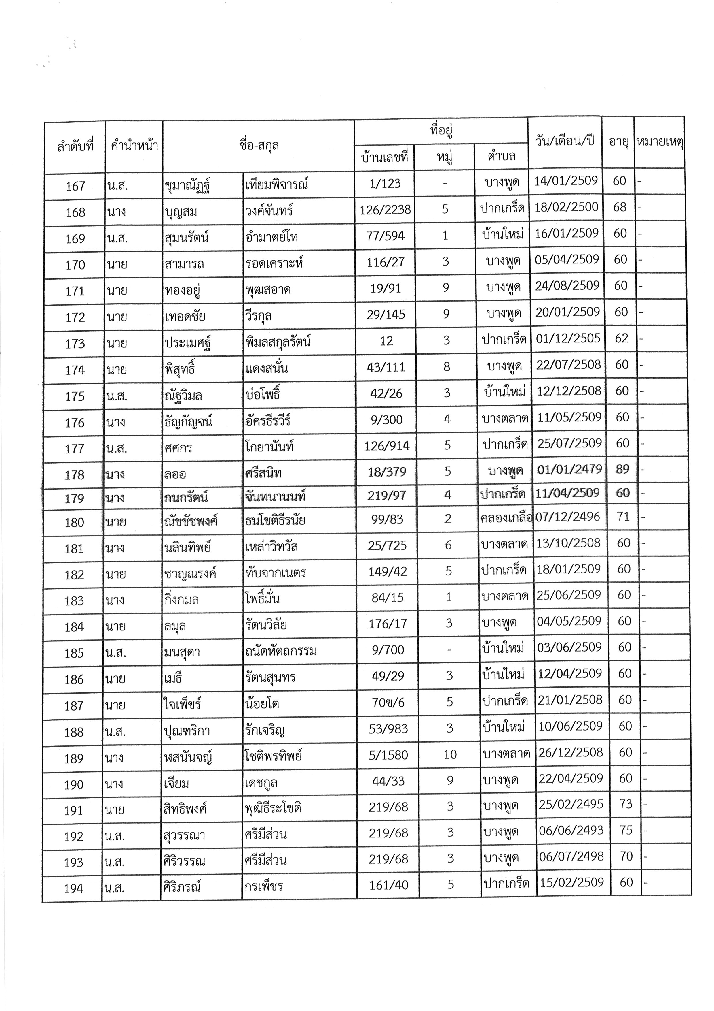 ประกาศเทศบาลนครปากเกร็ด เรื่อง ประกาศบัญชีรายชื่อผู้มีสิทธิรับเงินเบี้ยยังชีพผู้สูงอายุของเทสบาลนครปากเกร็ด ประจำปีงบประมาณ พ.ศ.๒๕๖๙ (เดือนกันยายน ๒๕๖๘)