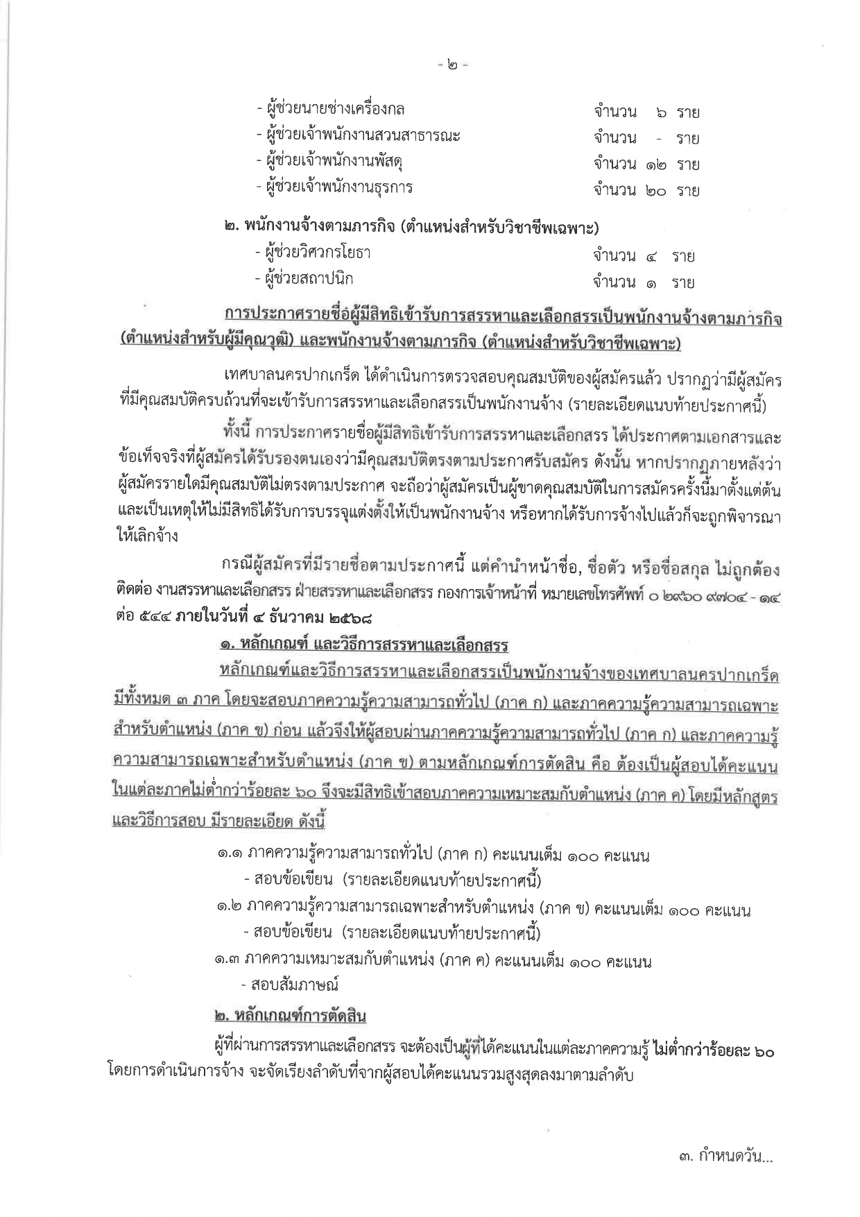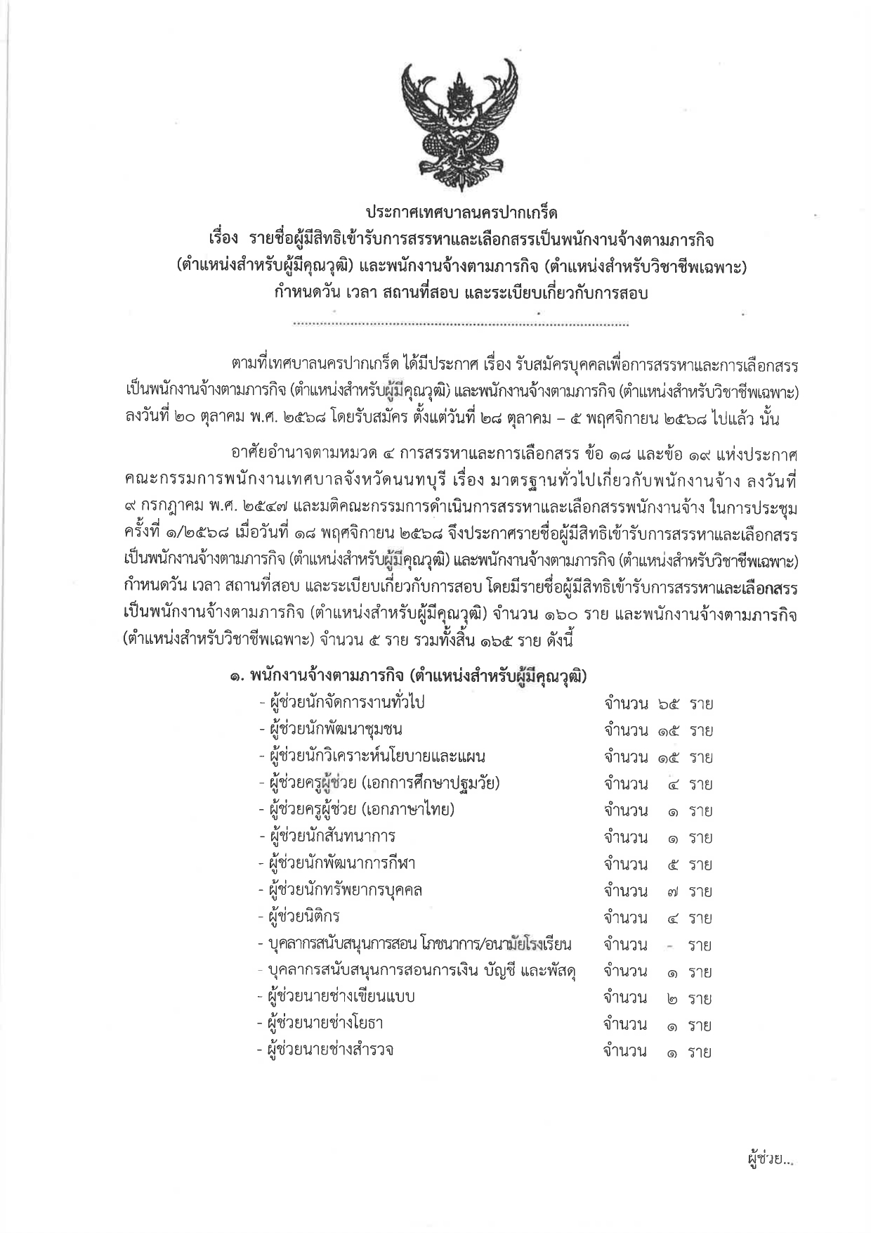 รายชื่อผู้มีสิทธิเข้ารับการสรรหาและเลือกสรรเป็นพนักงานจ้างตามภารกิจ (ตำแหน่งสำหรับผู้มีคุณวุฒิ) และพนักงานจ้างตามภารกิจ (ตำแหน่งสำหรับวิชาชีพเฉพาะ)